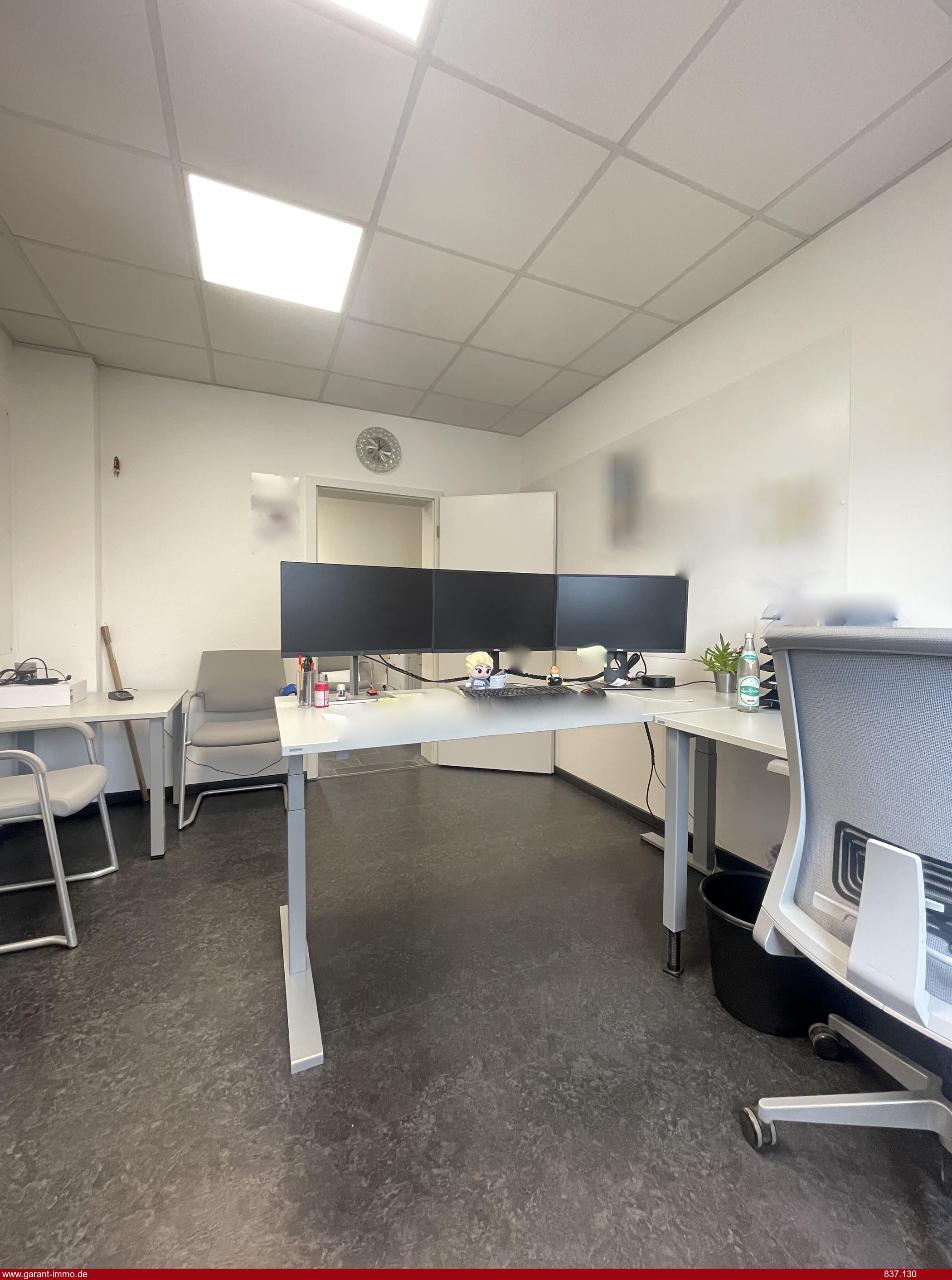 Das Gebäude verfügt insgesamt über drei Etagen mit identischem Ausstattungsstandard. Aktuell steht noch **eine** Büroeinheit zur Verfügung. Die Fläche lässt sich flexibel gestalten, von offenen Bürostrukturen bis hin zu individuell abgetrennten Räumen.
