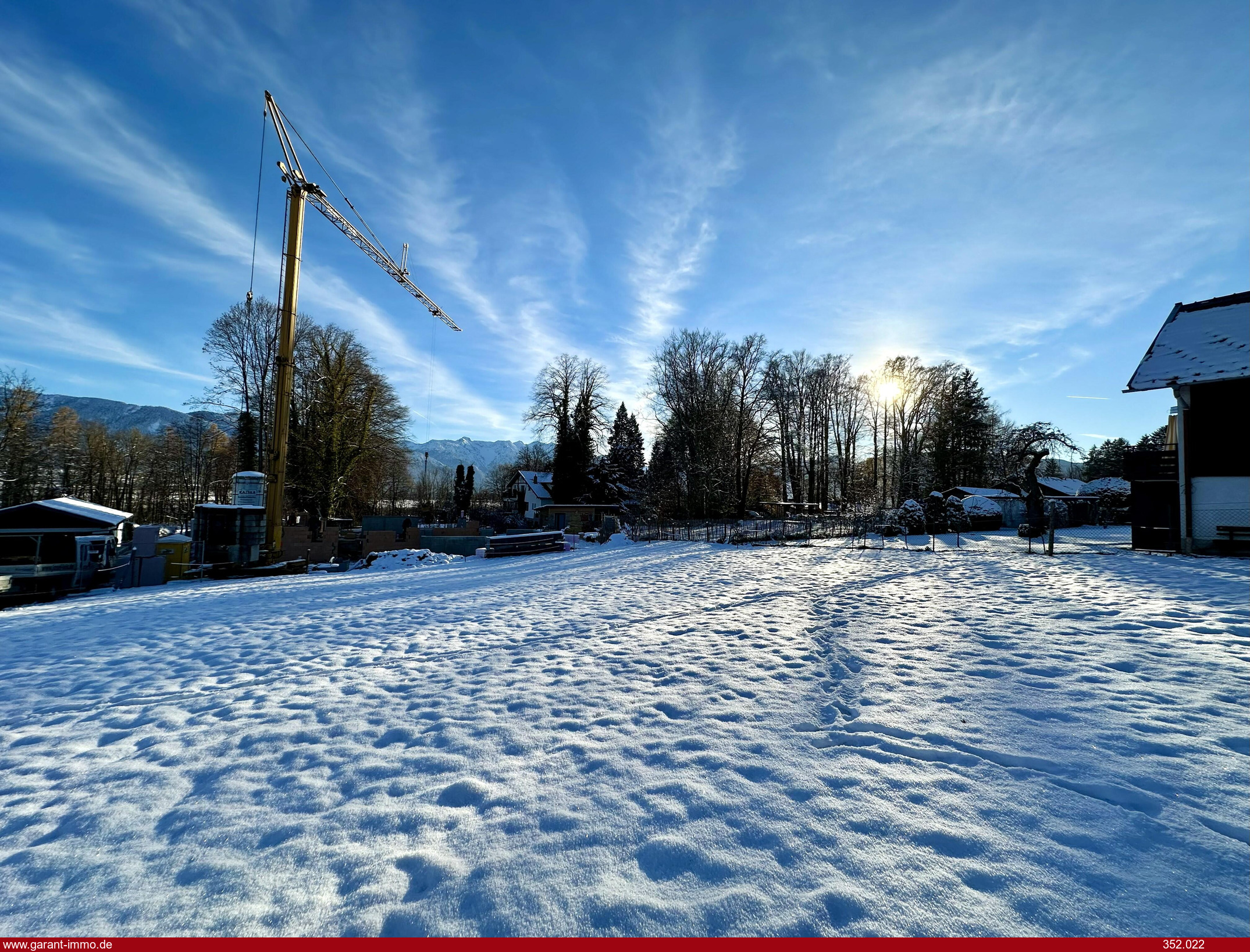Das Grundstück liegt in einer ruhigen Sackgasse am südwestlichen Ortsrand, eingebettet in die malerische Voralpenlandschaft mit herrlichem Blick auf die umliegenden Berge. Die Nähe zum Staffelsee und zum einzigartigen Murnauer Moos schafft eine unvergleichliche Lebensqualität.