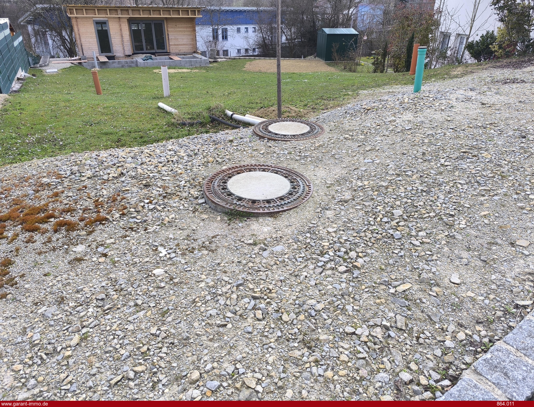 Auf dem Grundstück befindet sich ein Klein/Garten/Pool/Gästehaus, deren Nutzung je nach Planung noch offen ist. Das zugehörige Kleinhaus in robuster Holzbauweise hat einen Wert von ca. 60.000,- Euro. Zugerechnet vom massiven Unterbau vom Kleinhaus, der Hangsicherung, Kanalerschließung, Unterboden, belaufen sich die Kosten bzw. Wert hinsichtlich dessen für das Kleinhaus mit Umgebungsarbeiten auf total ca. 100.000,- Euro.