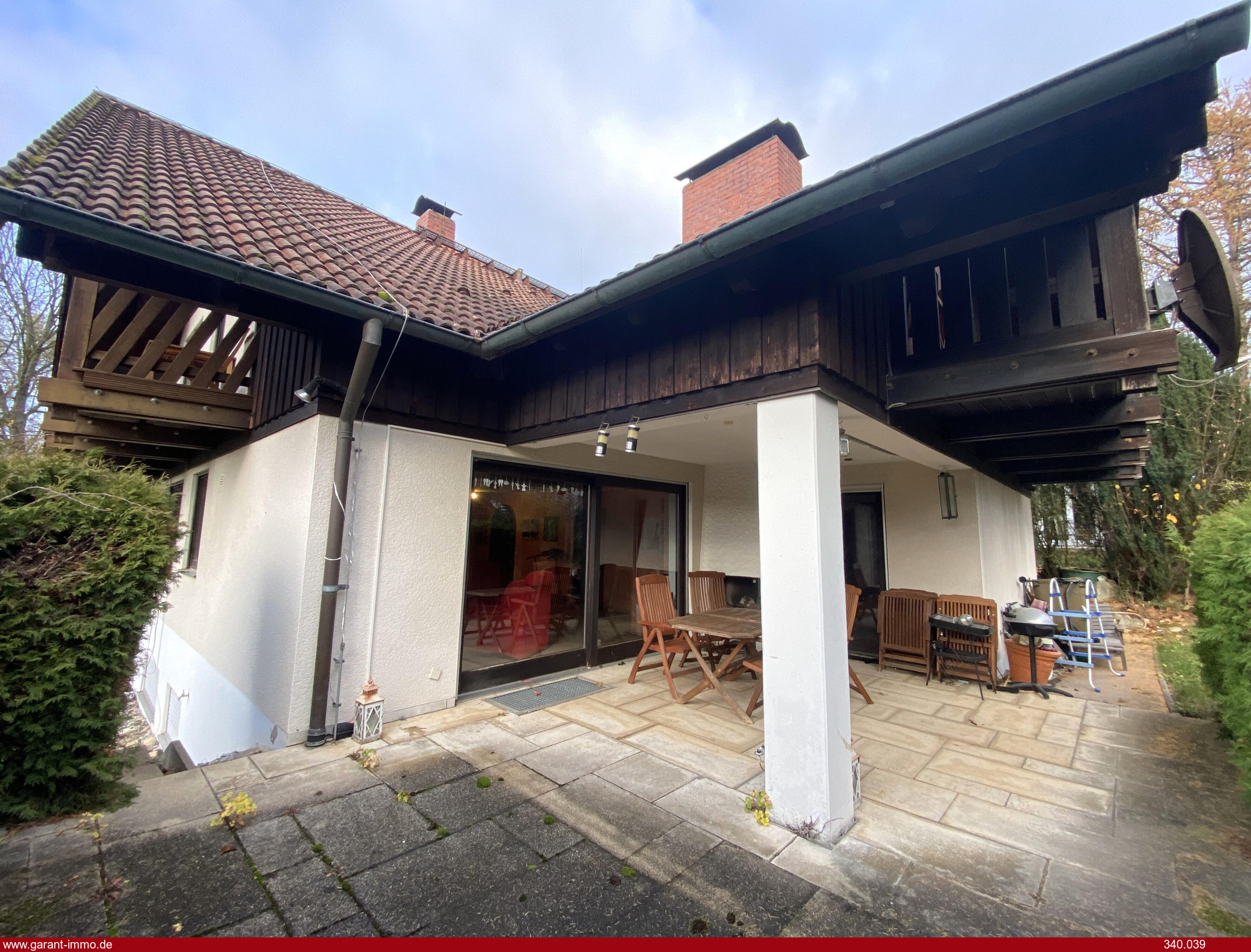 Ein Garten mit teilüberdachter Süd-West-Terrasse und offenem Außenkamin sowie zwei überdachte Balkone in Süd- und Westausrichtung laden zu geselligen und erholsamen Stunden ein.