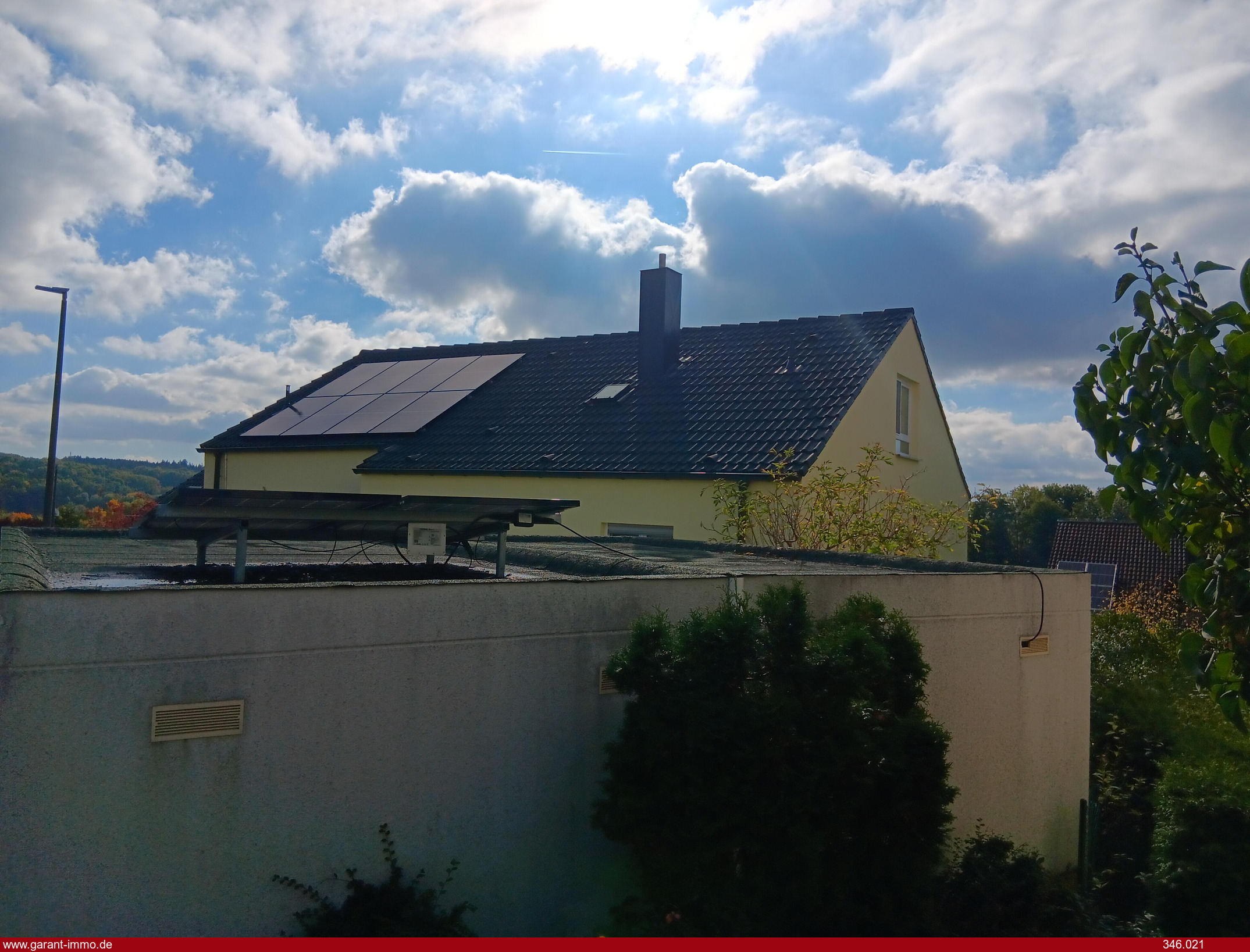 Ein besonderes Highlight dieser Immobilie ist die leistungsstarke Photovoltaikanlage auf dem Wohnhaus sowie auf der Doppelgarage, ergänzt durch eine großzügige Speichereinheit.