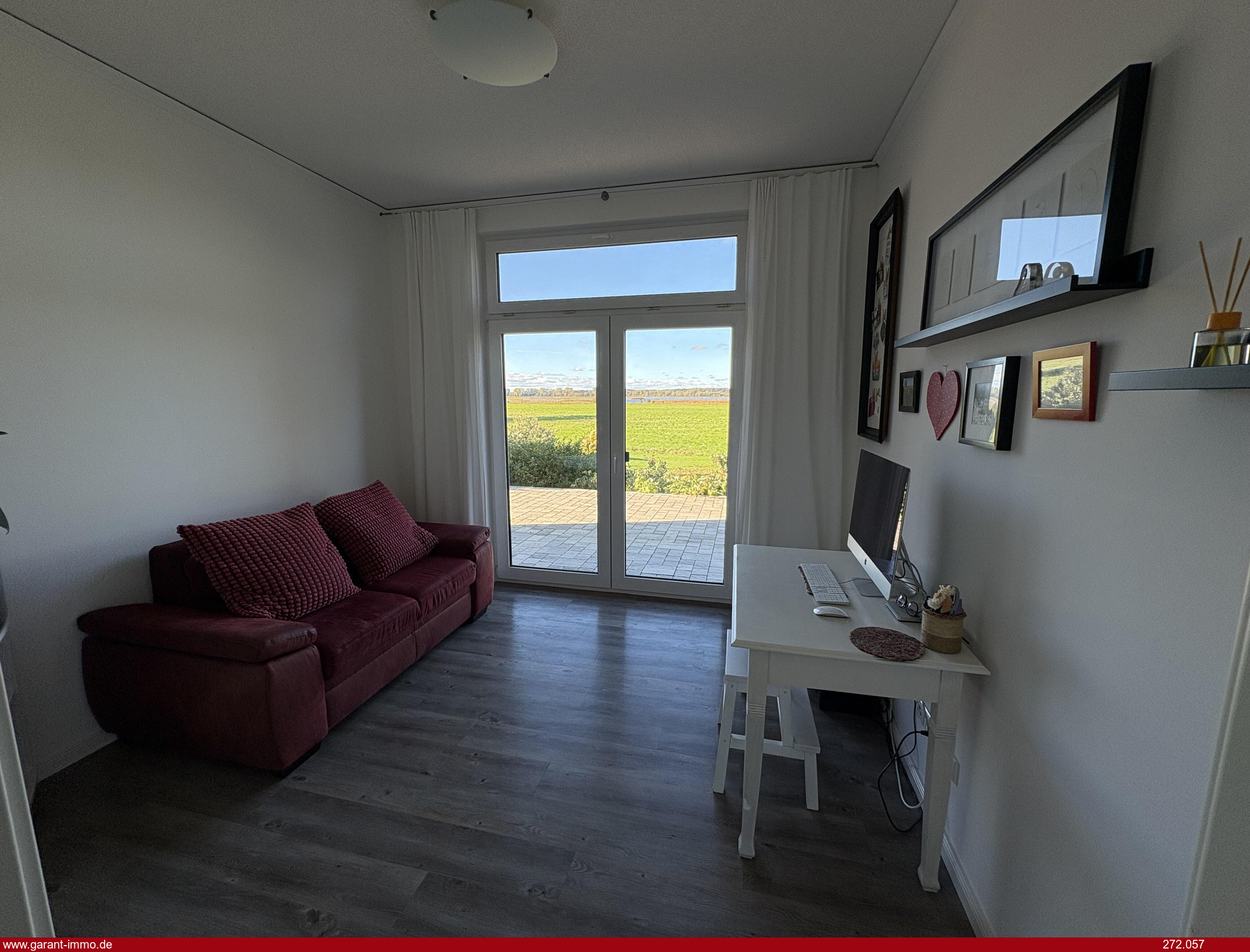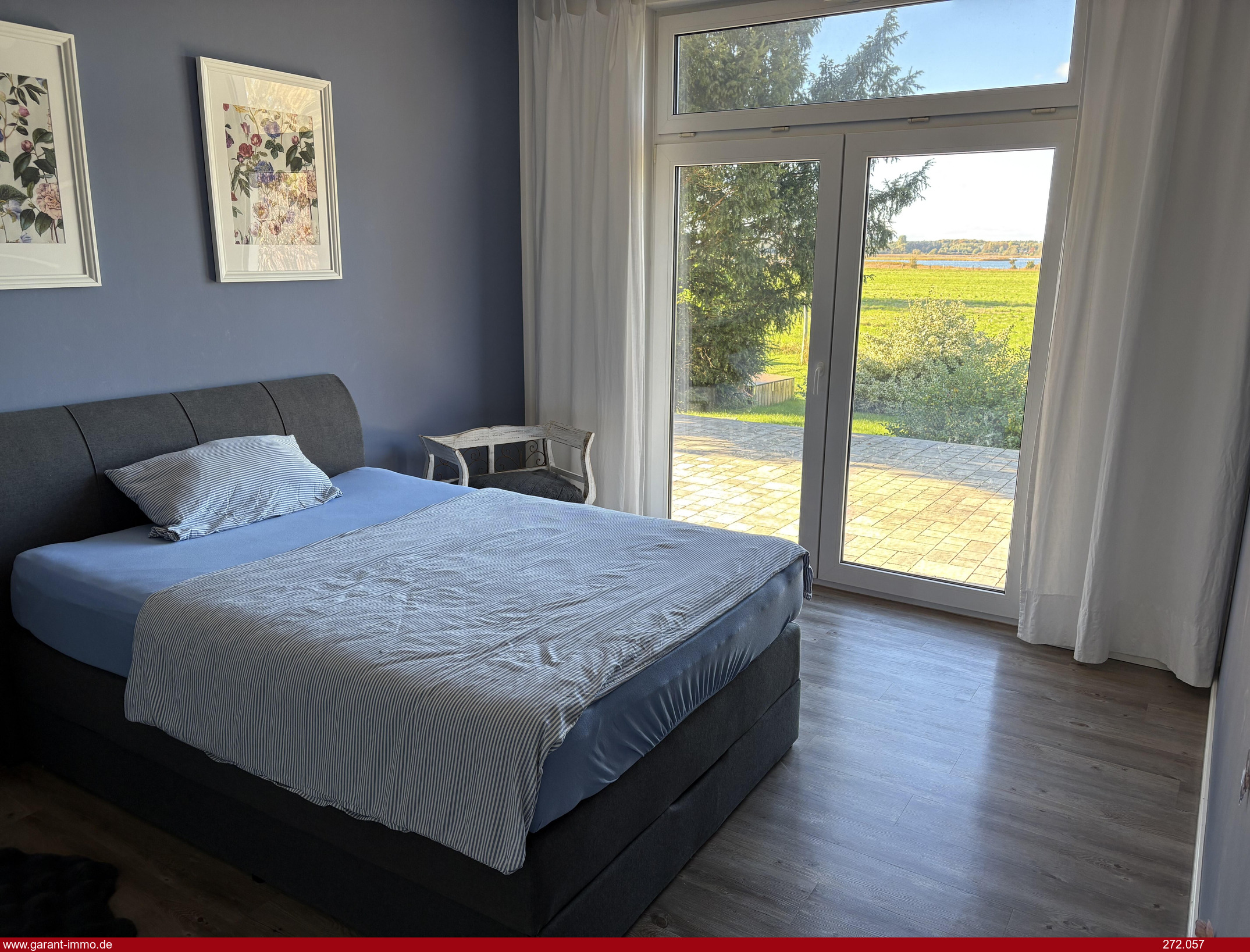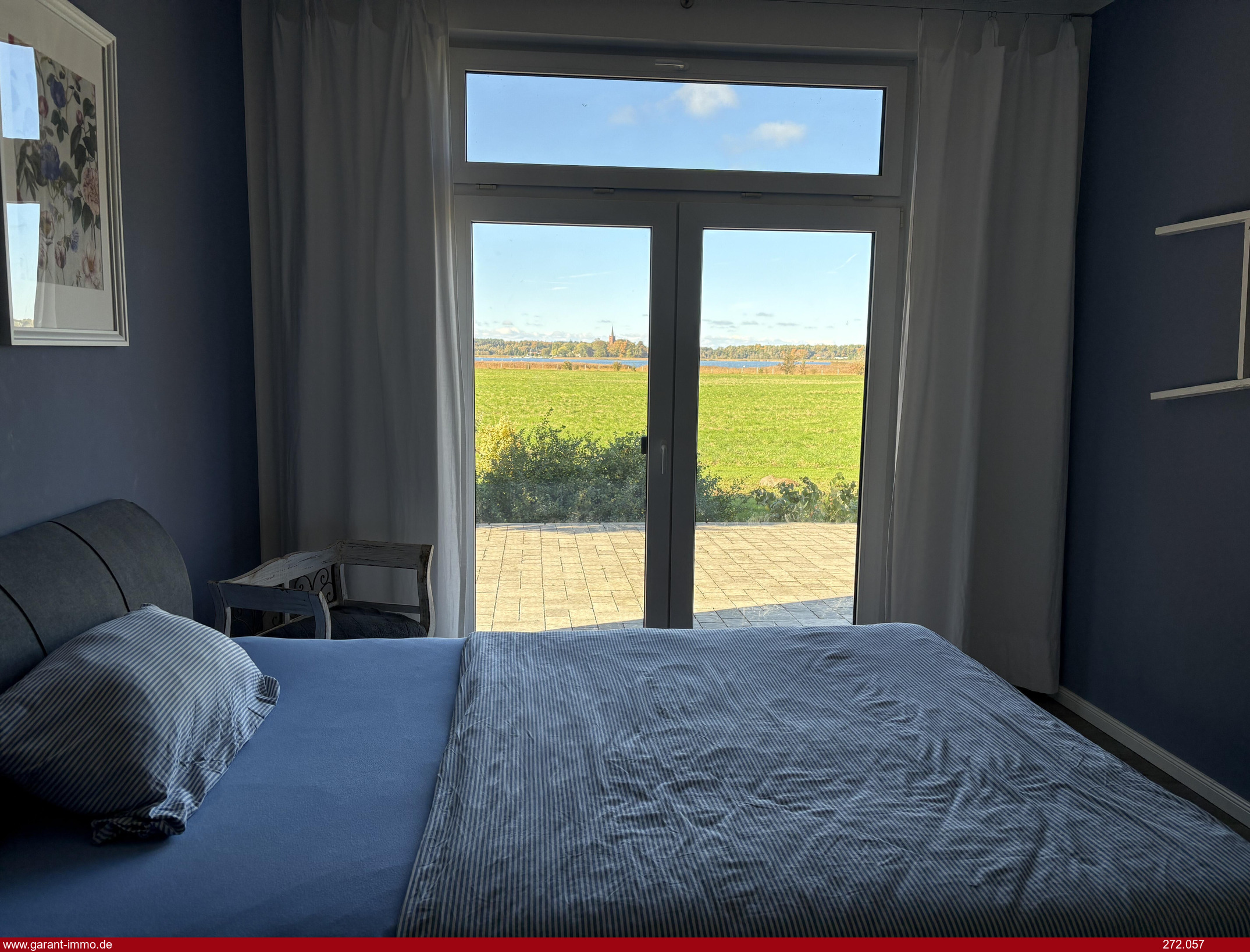 Ebenfalls zum Wasser offen ist das Kinderzimmer (Büro) und das Schlafzimmer, welches ein angegliedertes Ankleidezimmer hat. Ein großzügiges Bad mit Wanne, Walk-In-Dusche und WC runden das Objekt ab.