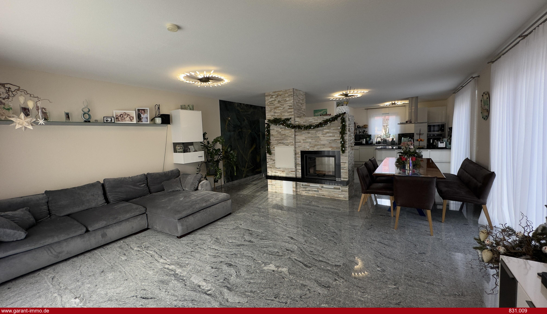 * Offener, hell gestalteter Wohn- und Essbereich