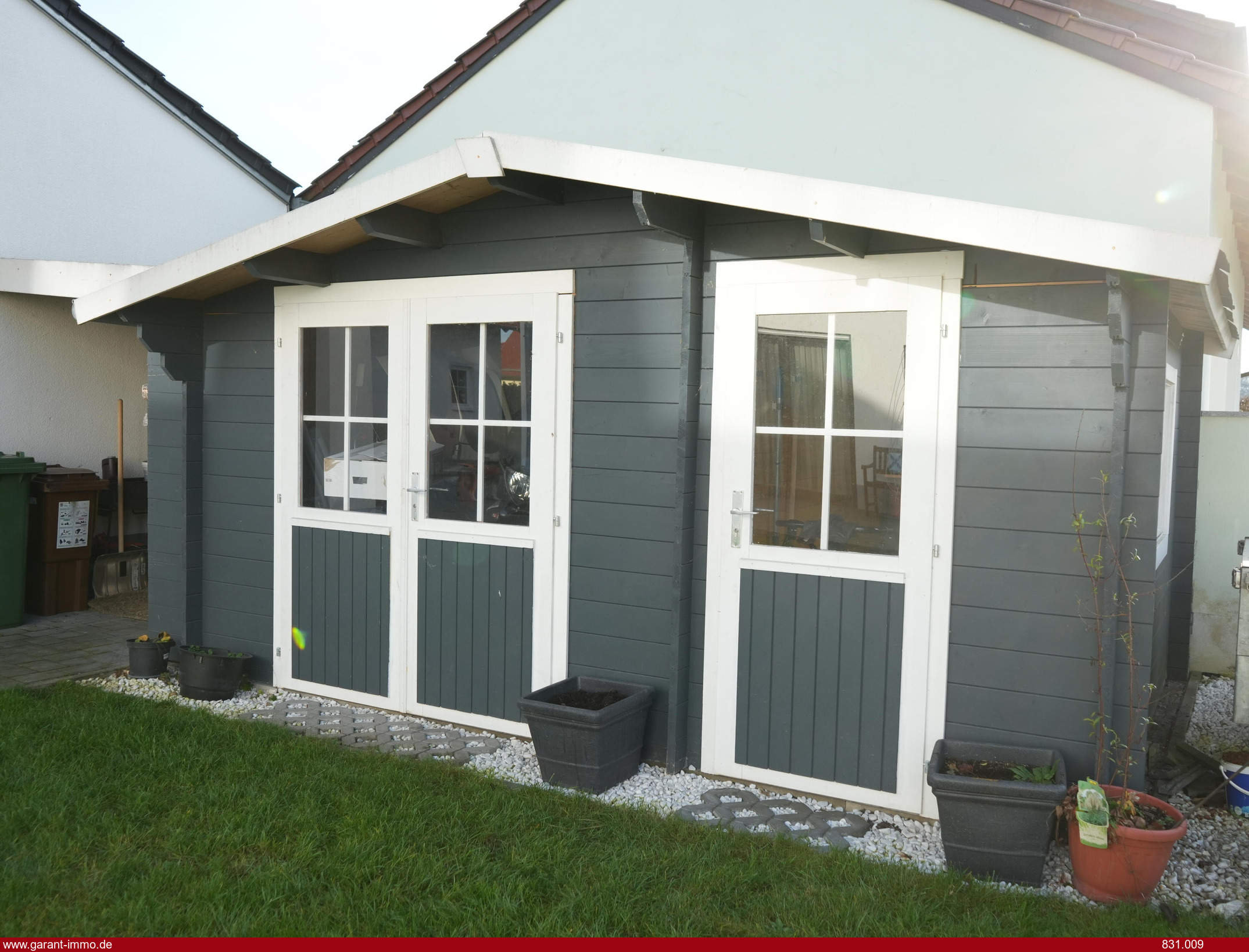 * Pflegeleichter Garten mit Gartenhaus