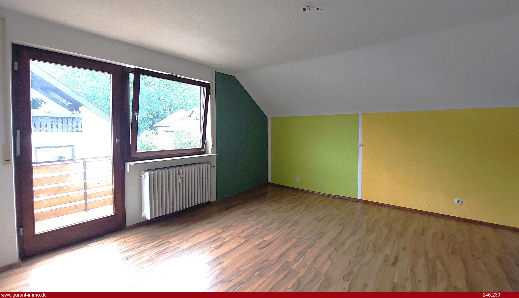 Boden, Wände wurden ca. 1993 renoviert, die mahagoni-farbenen Holzfensterrahmen mit Doppelisolierverglasung sind nun gestrichen worden.