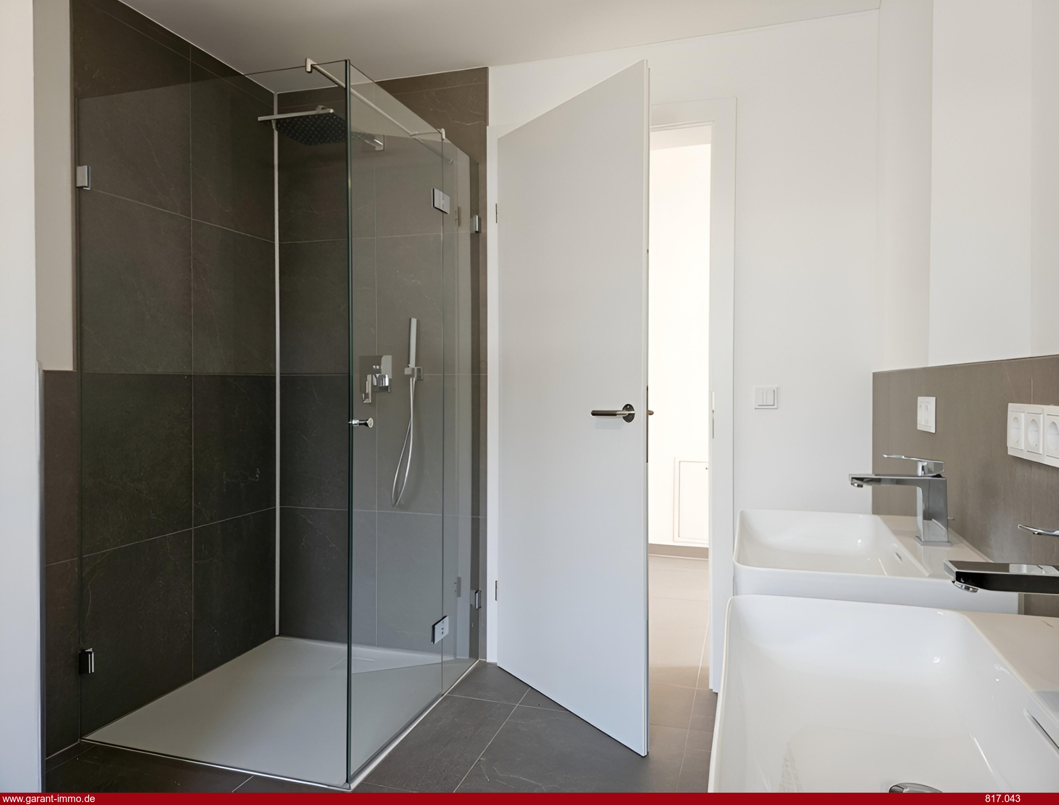 * Badewanne, Dusche und zwei Waschbecken