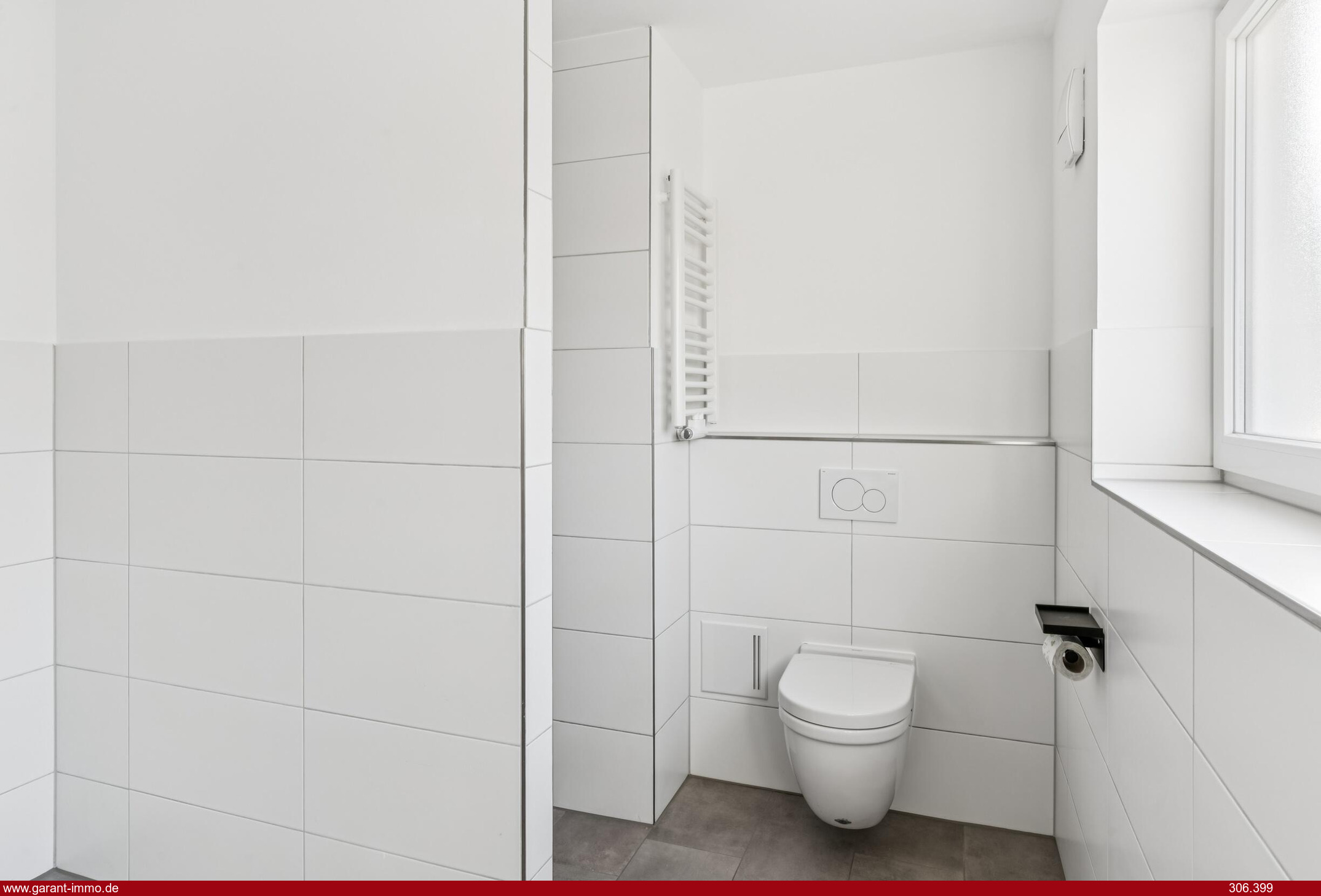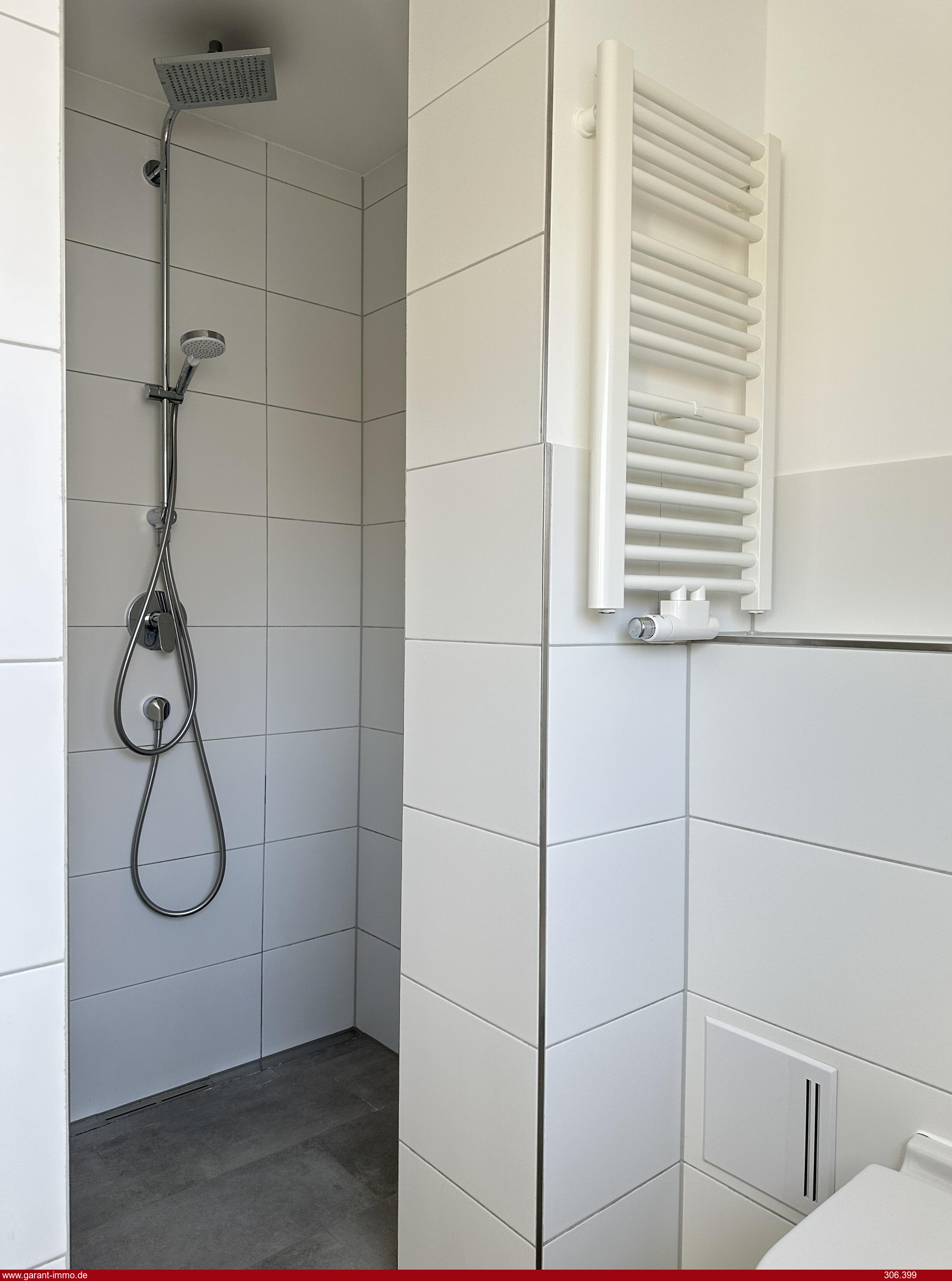 * Bad mit Fenster, begehbarer Dusche und Handtuchheizkörper