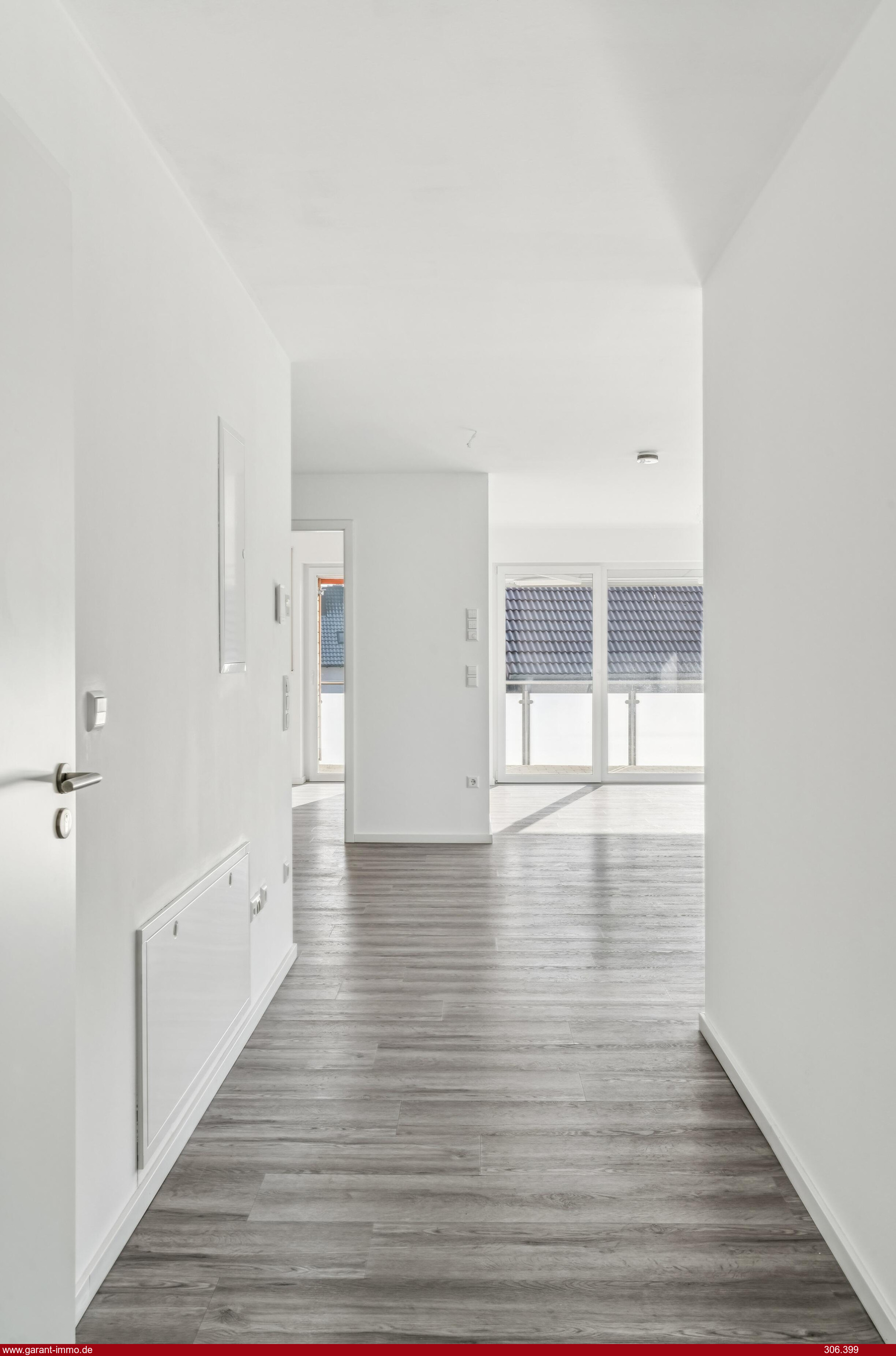Große Fensterflächen durchfluten die Räume mit Tageslicht und schaffen ein helles, freundliches Wohngefühl. Während das Wohnzimmer mit elektrischen Jalousien ausgestattet ist, verfügen alle weiteren Zimmer über Rollläden, die für zusätzlichen Sonnen- und Sichtschutz sowie ein angenehmes Raumklima sorgen. Der offene Wohn- und Essbereich bildet das Herzstück der Wohnung und bietet mit seiner großzügigen Gestaltung ideale Voraussetzungen für eine moderne Küche mit Kochinsel - perfekt für gesellige Abende und gemeinsames Kochen. Direkt neben dem Küchenbereich befindet sich ein geräumiger Hauswirtschaftsraum mit Anschlüssen für Waschmaschine und Trockner, der nicht nur für die Haustechnik, sondern auch für Vorräte, Staubsauger, Bügelbrett & Co. ausreichend Platz bietet und den Alltag besonders komfortabel gestaltet.