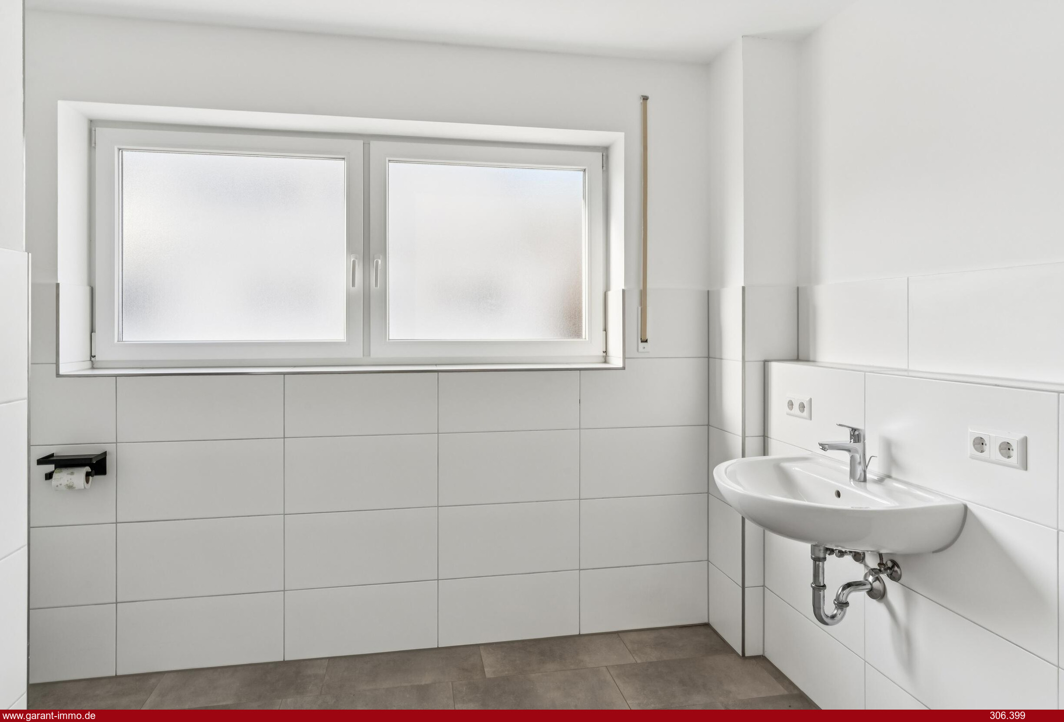 Das große Tageslichtbad überzeugt mit einer bodengleichen, begehbaren Dusche, modernem Design und viel Bewegungsfreiheit. Darüber hinaus bietet es ausreichend Platz für Badezimmermöbel und somit für alles, was im Alltag im Bad benötigt wird.