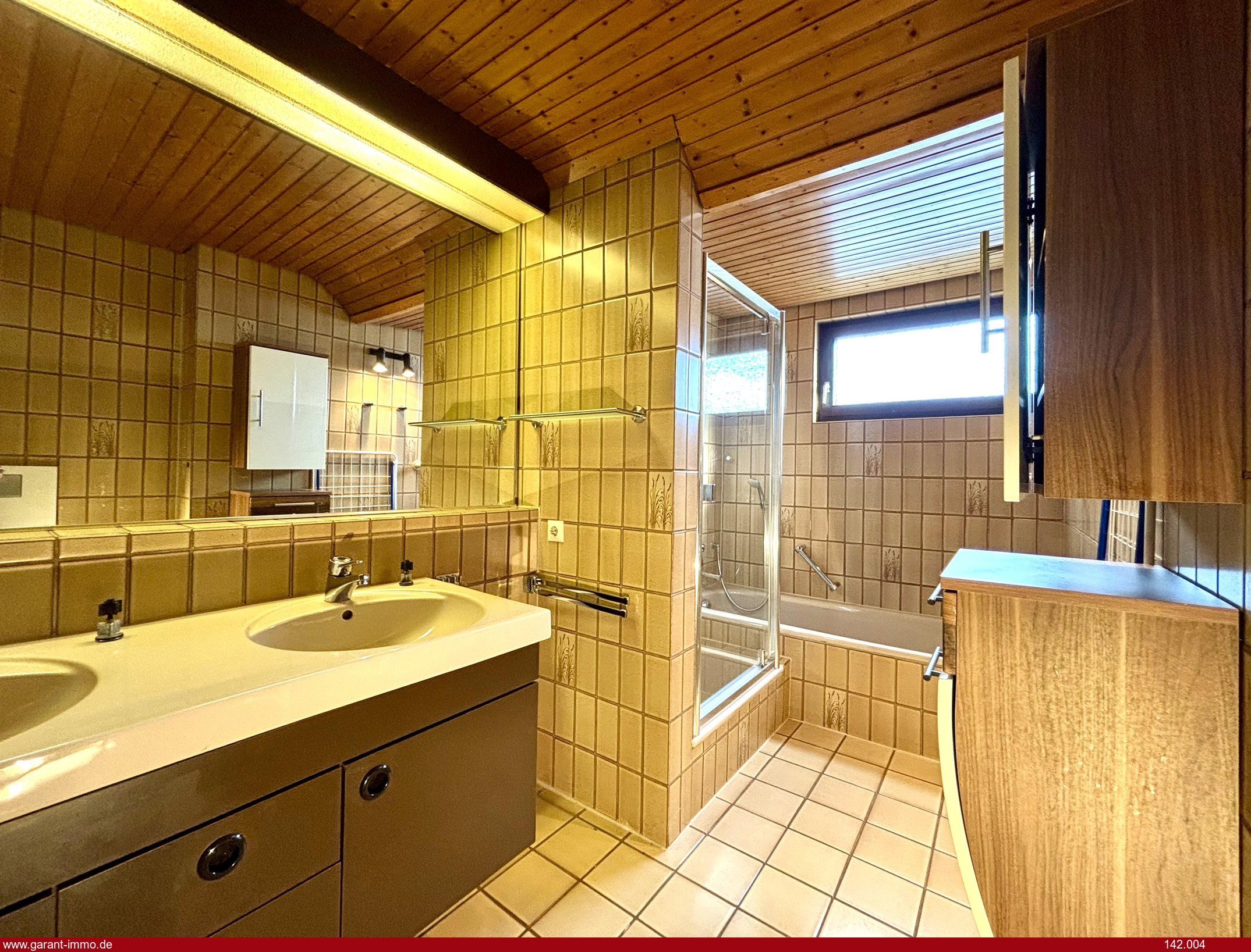 * Tageslichtbad mit Doppelwaschbecken, Dusche, Badewanne und Bidet-WC